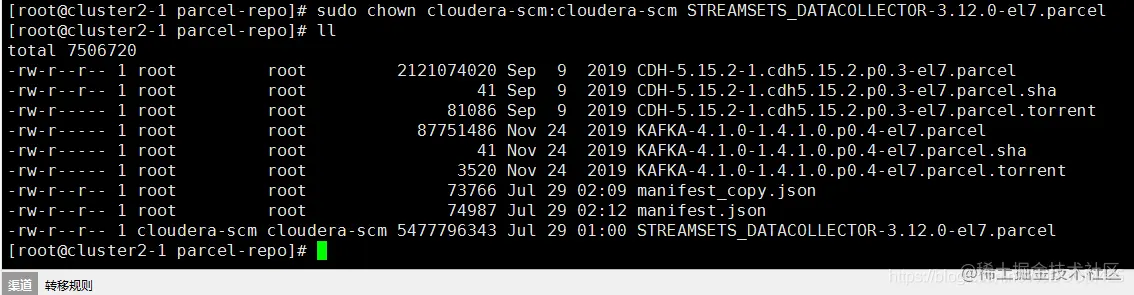 2、将StreamSets Parcel和校验文件复制到Cloudera Manager本地存储库路径中。