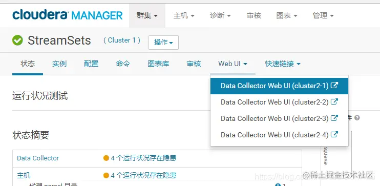 5、进入StreamSets管理界面,点击WebUI