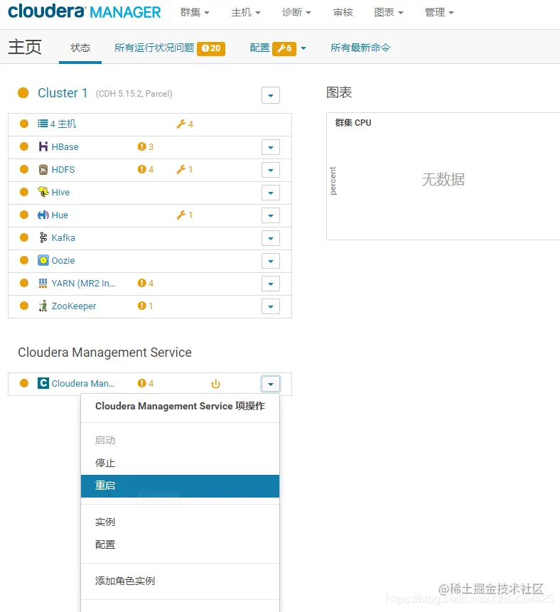 2、在Cloudera Manager中,重新启动Cloudera Management Service