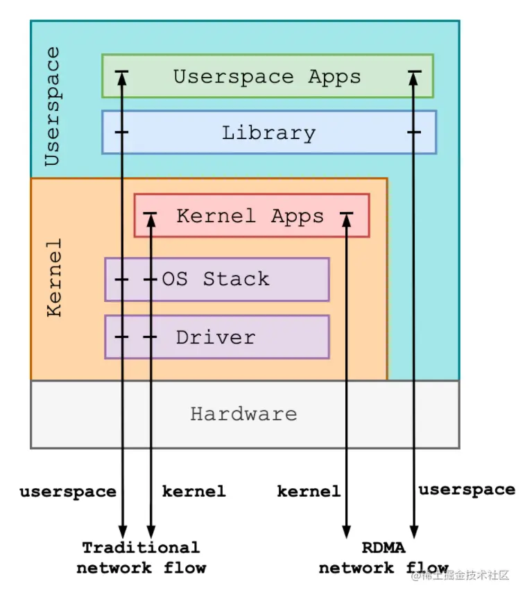 (图/传统网络与 RDMA 网络协议栈对比)