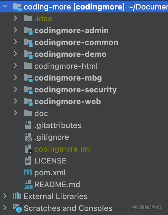 比如说 codingmore-admin 后端管理模块需要登录认证,就在 codingmore-admin/pom.xml 文件中添加 codingmore-security 依赖。