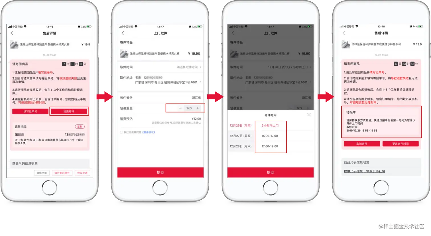 在app或后台一键退货,不用线下找快递员,不用苦苦等待即可完成发货。
