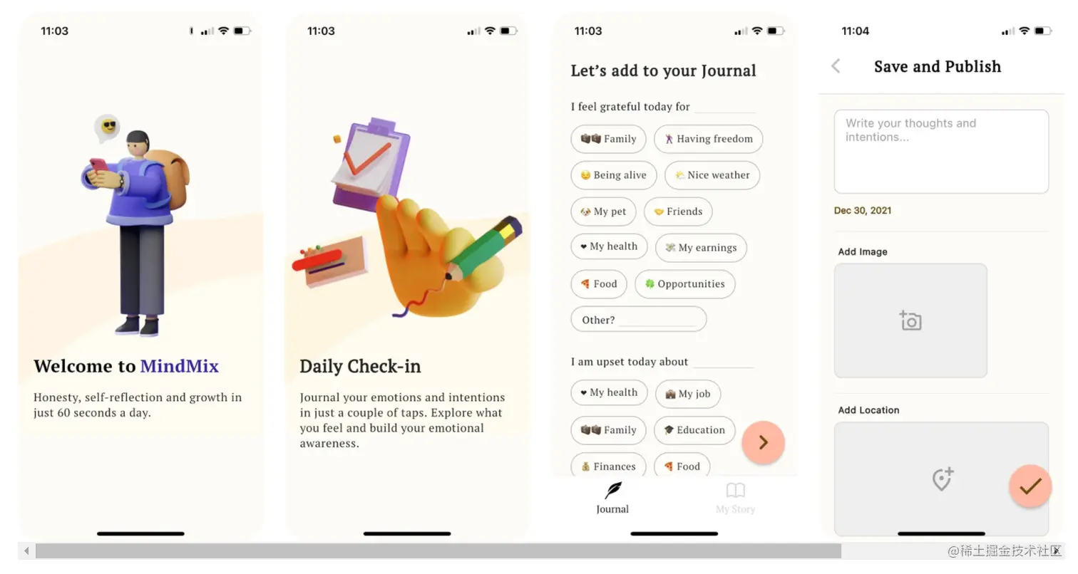 - MindMix: Social Journal - 这也算是一个心情日记类的APP,界面做的很好看,有ClubHouse的风格。免费的,很不错。