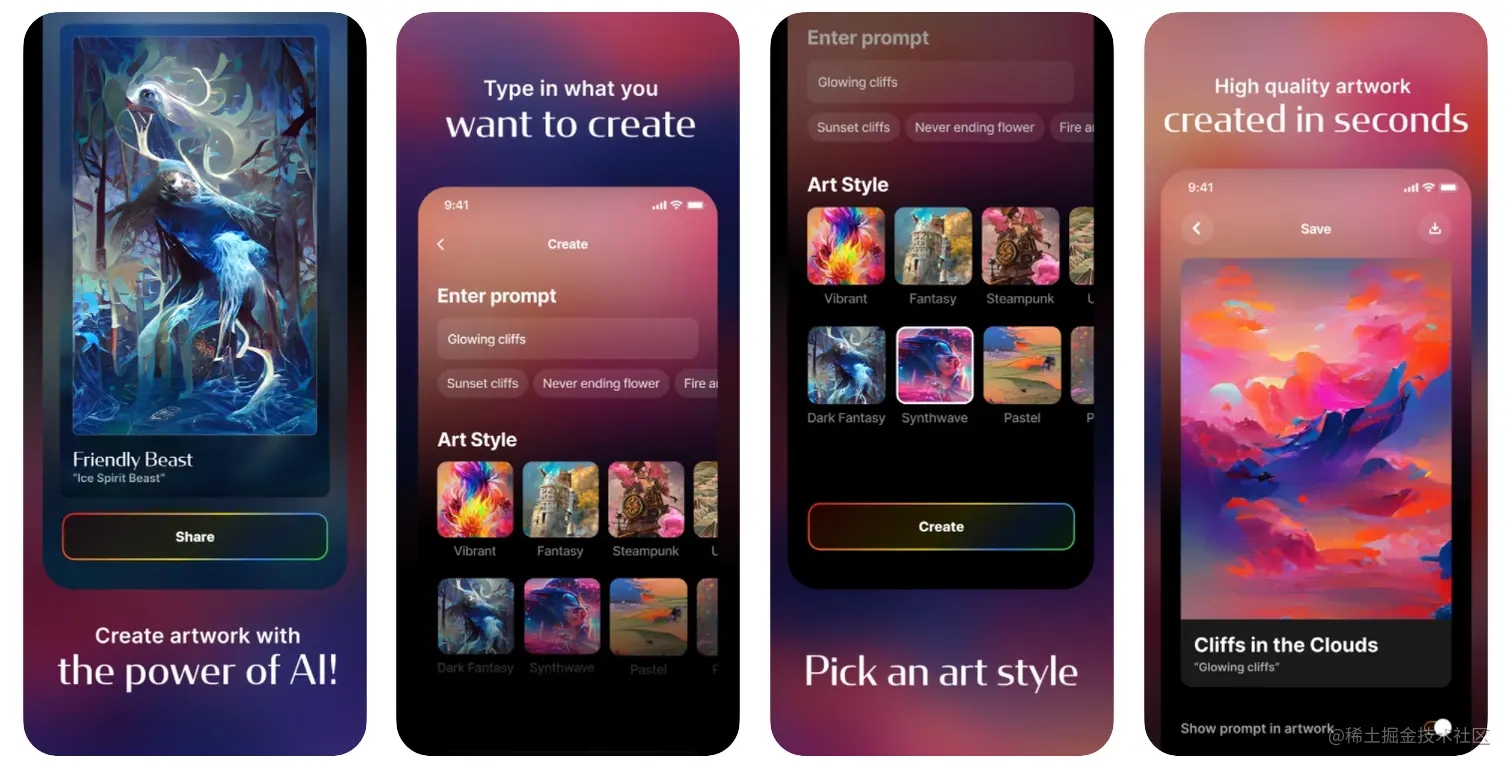 3. Dream by WOMBO 这个app做的真的优秀,也是在 Twitter 上推荐过,这类基于机器学习训练出来的图像处理算法。我找了张拍的照片试了一下效果真的很不错,看上去这个公司是通过打印生成的艺术品来盈利,APP完全免费。