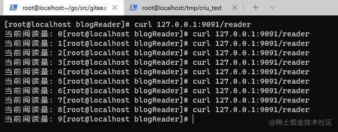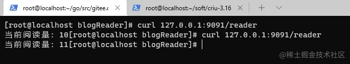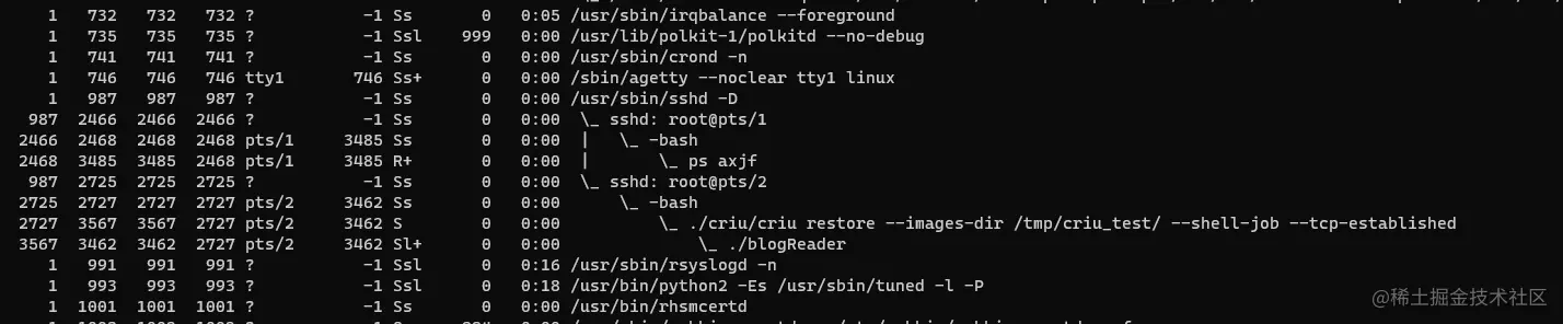 我们可以看到,我们原先进程blogReader父进程已经是criu,但是pid还是3462