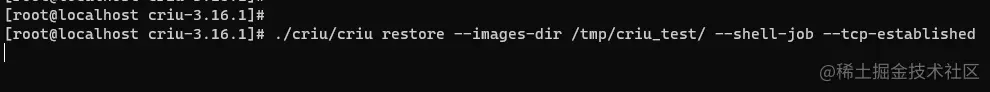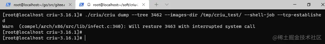 命令: ./criu/criu dump --tree 3462 --images-dir /tmp/criu_test/ --shell-job --tcp-established