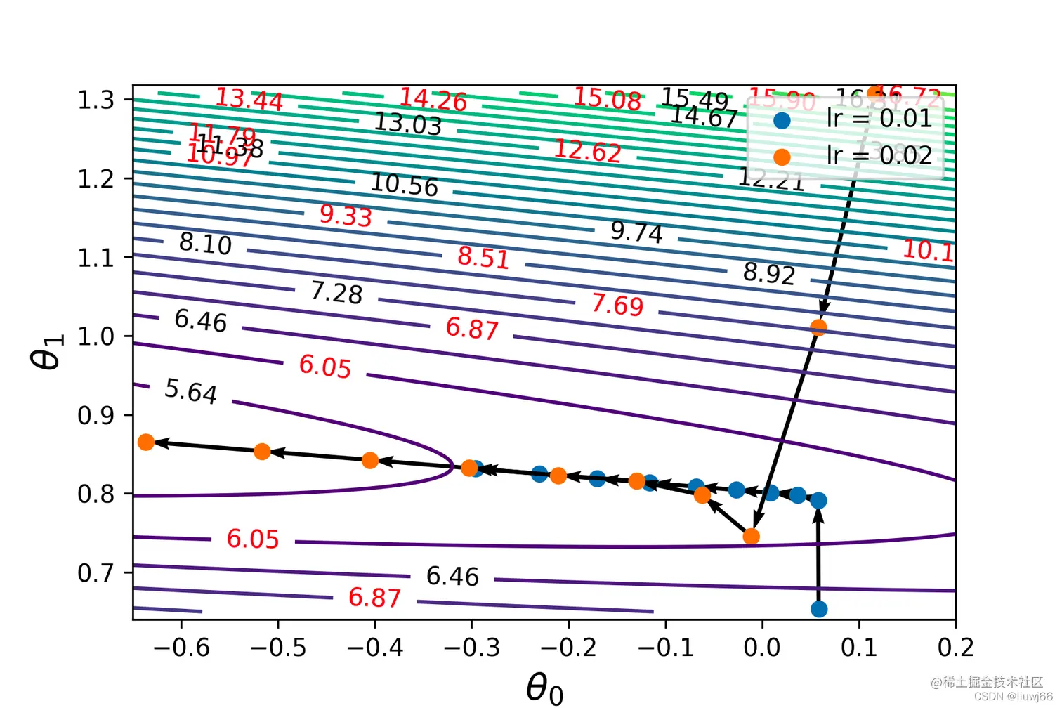 8、若要比较不同学习率下的迭代轨迹,可使用一下代码