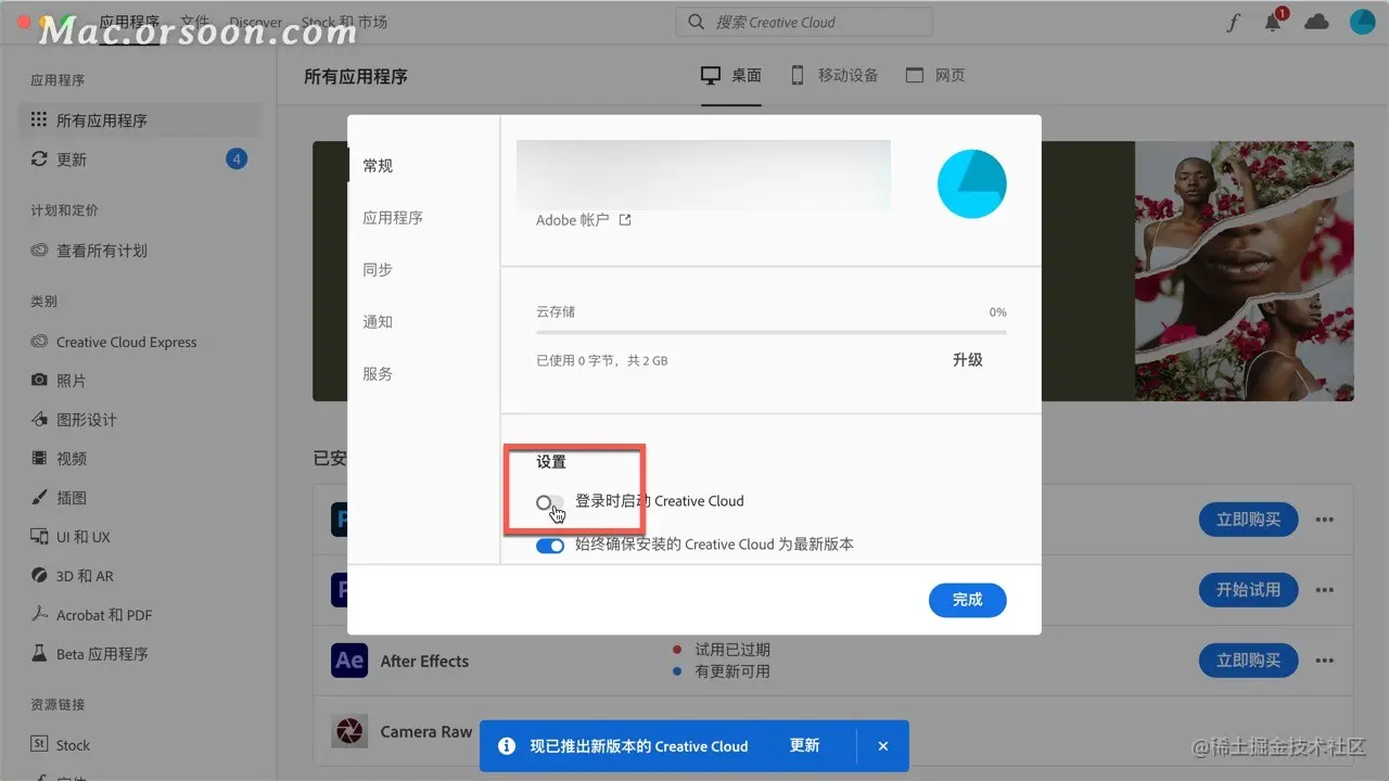 大家发现adobe creative cloud开机自启之后,往往会选择在登录自启动里查看软件是否被勾选,但是往往这个时候的大家是找不到creative cloud软件的。这时候,就需要在软件中进行自主设置,或者直接使用终端代码进行设置。小编将这里为大家详细介绍如何使用这两种方式解决creative cloud开机自启的问题。