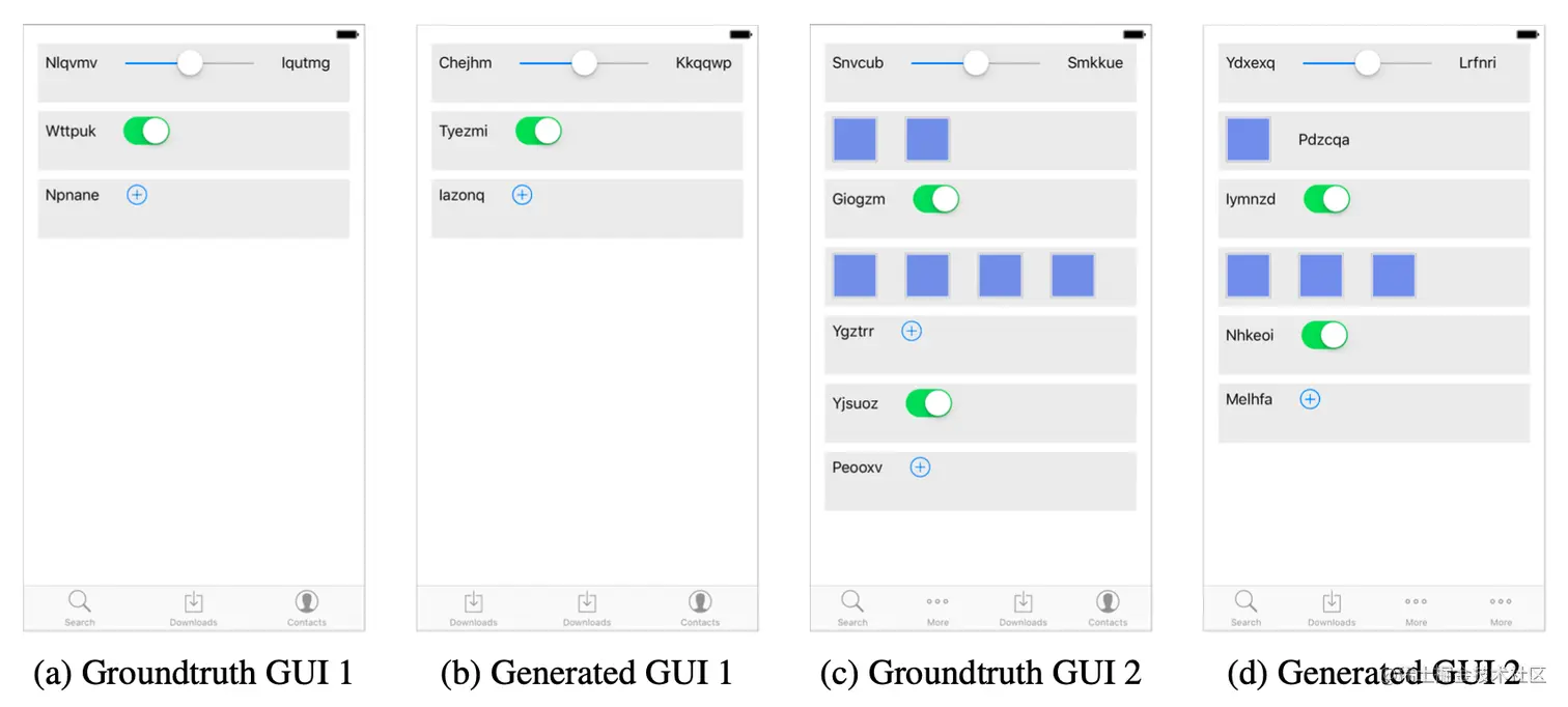 (a)是预期生成的GUI,(b)是这个方法生成的GUI;同理图(c)、(d)