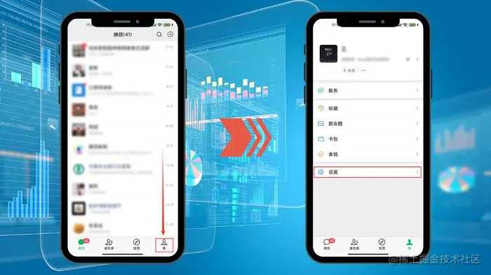 第1步:打开你的微信后,点击右下角的【我】,随后进入“设置”;