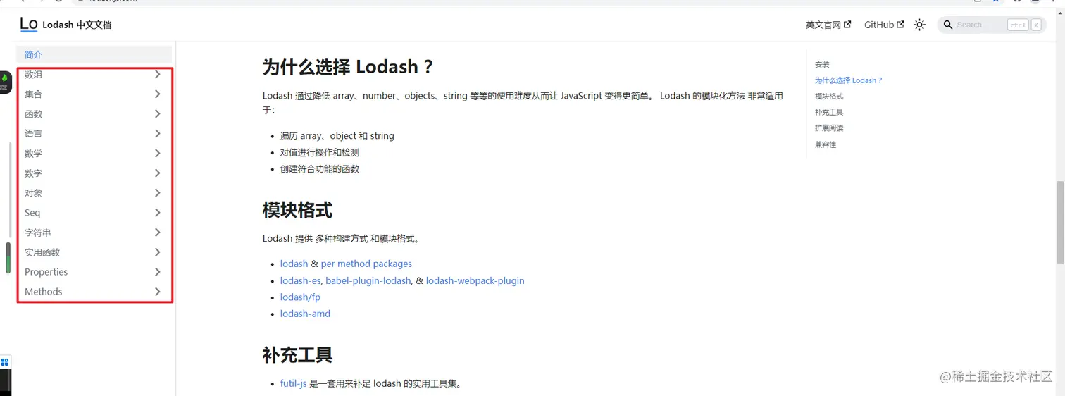 官网地址:www.lodashjs.com/