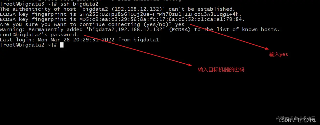 还需要在bigdata2上采用root账号配置一下无密登录到bigdata1、bigdata2、bigdata3服务器上。