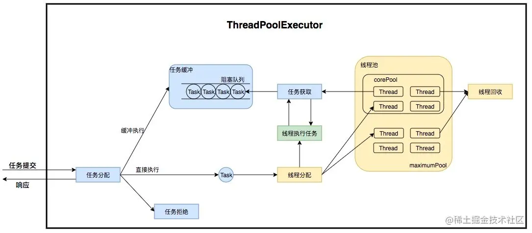 Executor作为一个灵活且强大的异步执行框架,其支持多种不同类型的任务执行策略,提供了一种标准的方法将任务的提交过程和执行过程进行了解耦开发,基于生产者和消费者模型,还提供了对生命周期的支持,以及统计信息收集,应用程序管理机制和性能检测等机制。