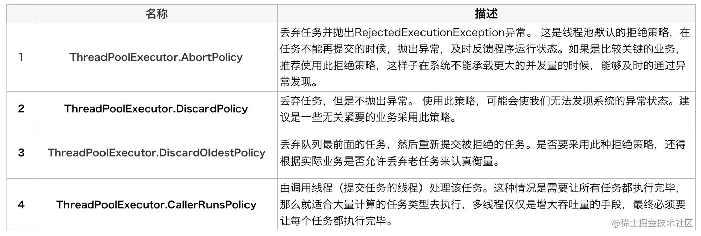 prestartCoreThread()(创建一个空闲任务线程等待任务的到达) 和prestartAllCoreThreads()(创建核心线程池数量的空闲任务线程等待任务的到达)方法动态调整。 - 如果一个池中现在运行的线程数多于