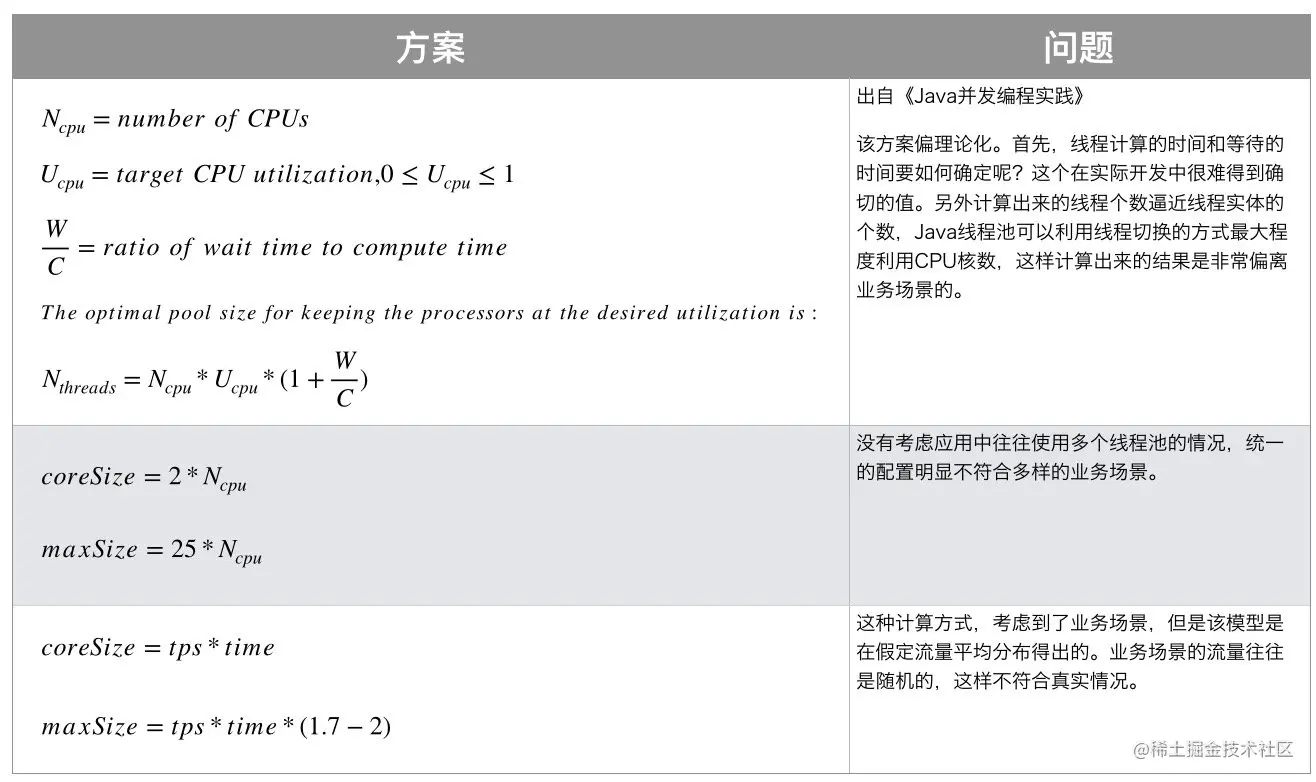 业界的一些线程池参数配置方案,总体来说,都不一定靠谱,还是要根据自己业务的实际情况来决定。