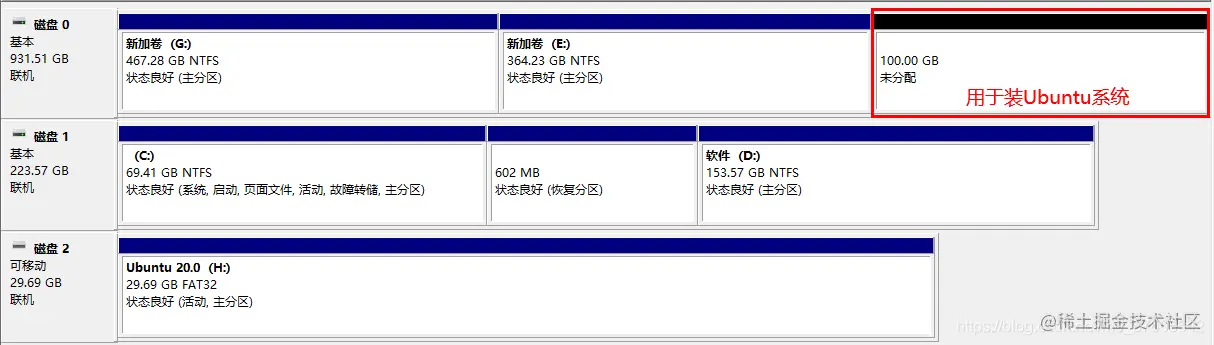 1. 磁盘准备,删除之前Ubuntu分区,删除卷