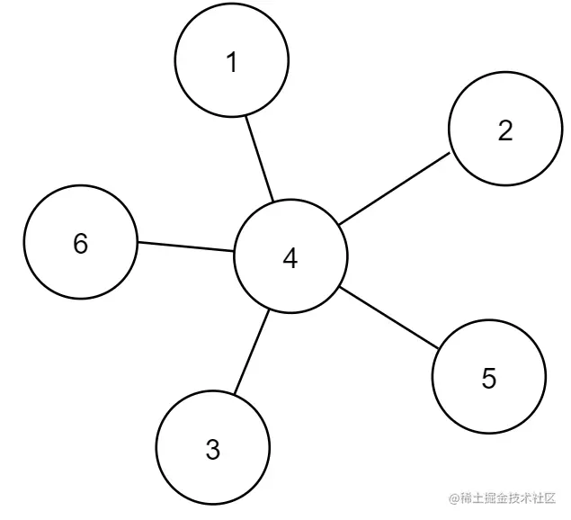 总共是 6 个节点, 5 条边 ,我们可以发现这 5 条边都会连接到中心节点,那么我们就不难想到节点的度,当然如果没有图论基础的话,可以去补充一下