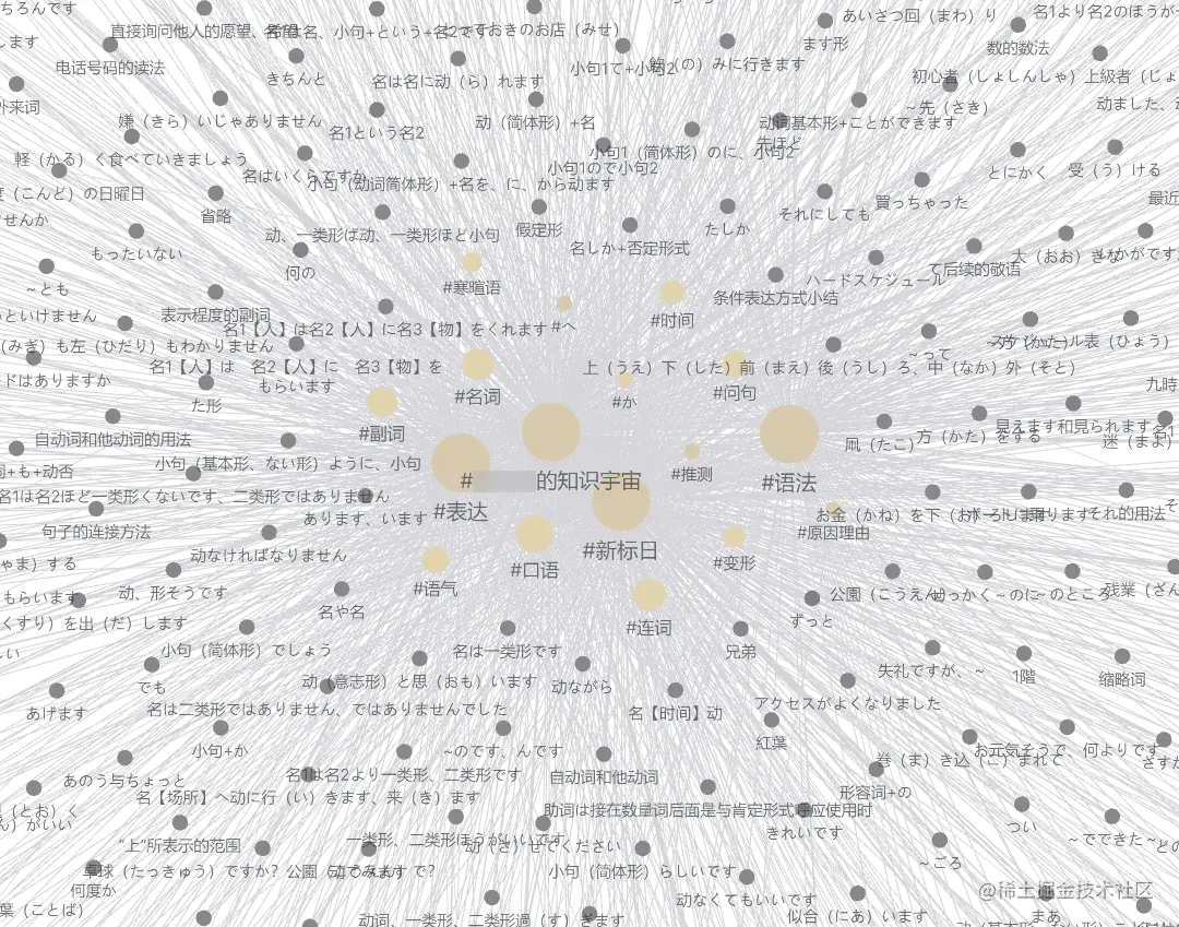 上面就是我这几十天抽时间记录的近五百张知识卡片,不过大部分卡片的双向链接还没有做好,例句也没有补全。接下来我还会抽时间完善这些内容。这些知识卡片全是关于新标日初级的内容,等以后学完中级、高级,我也会慢慢把知识点做成知识卡片,补充进来。