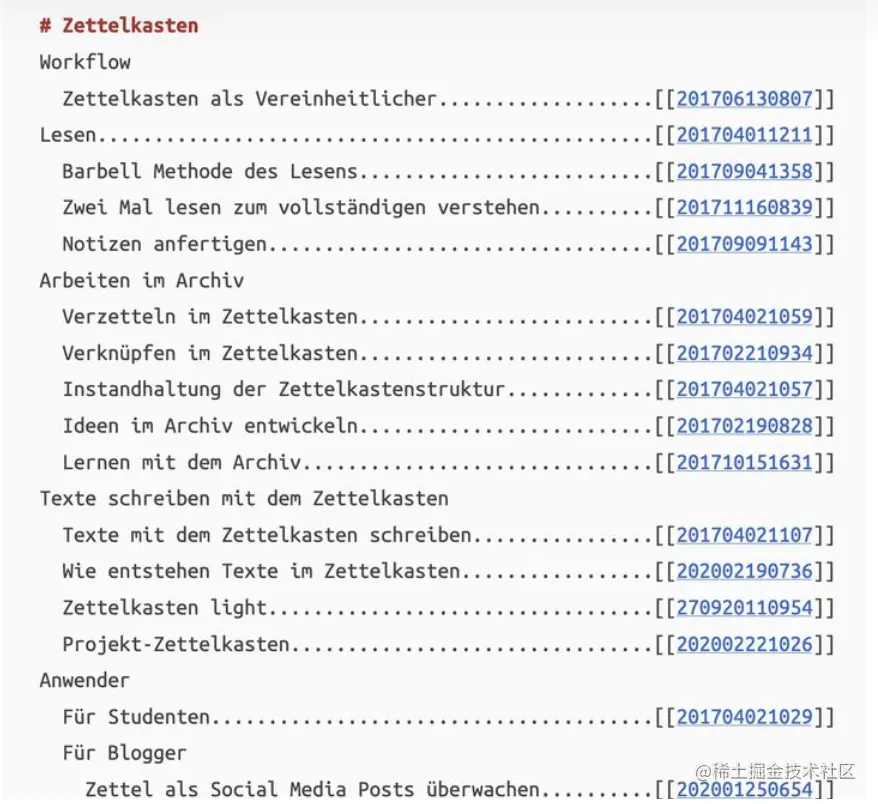 - 卢曼式的ID,每张笔记卡片都有数字和字母组成的标识符。