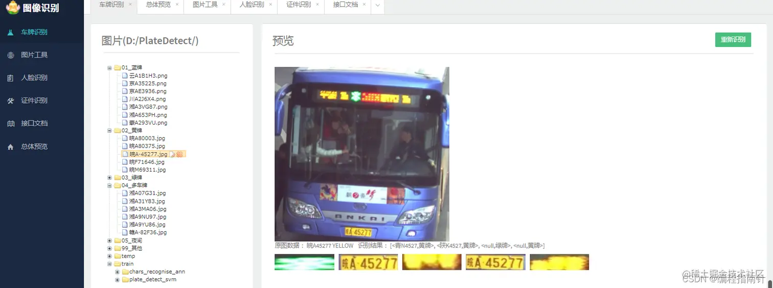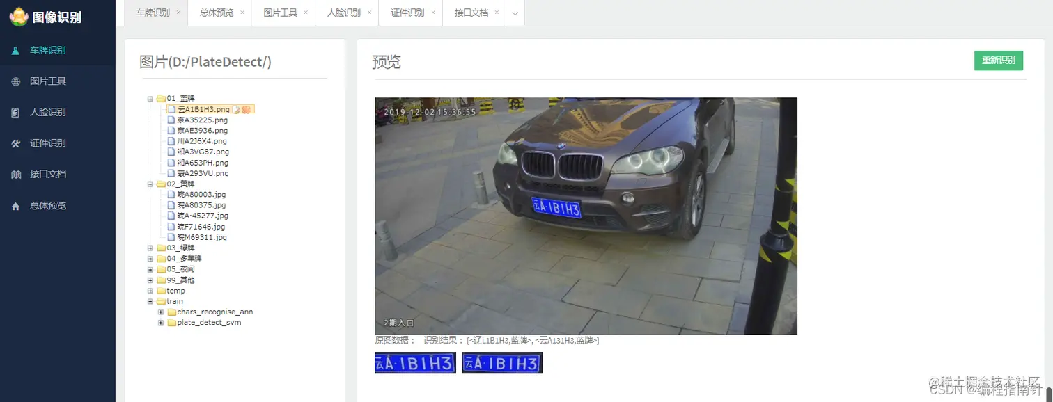 - 包含车牌识别、人脸识别等功能,贯穿样本处理、模型训练、图像处理、对象检测、对象识别等技术点