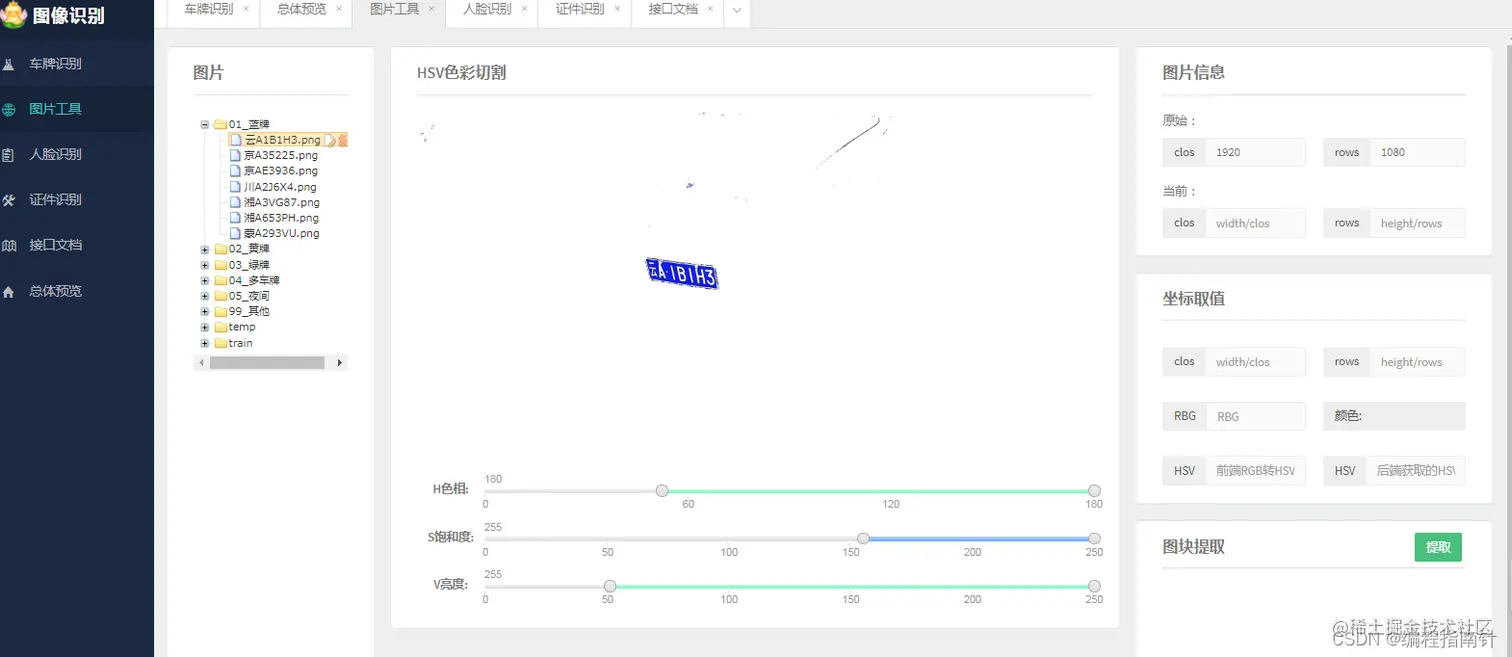 - 图片处理工具,目前实现了HSV色彩切割,后续将添加更多使用的图片处理工具,用于辅助算法优化