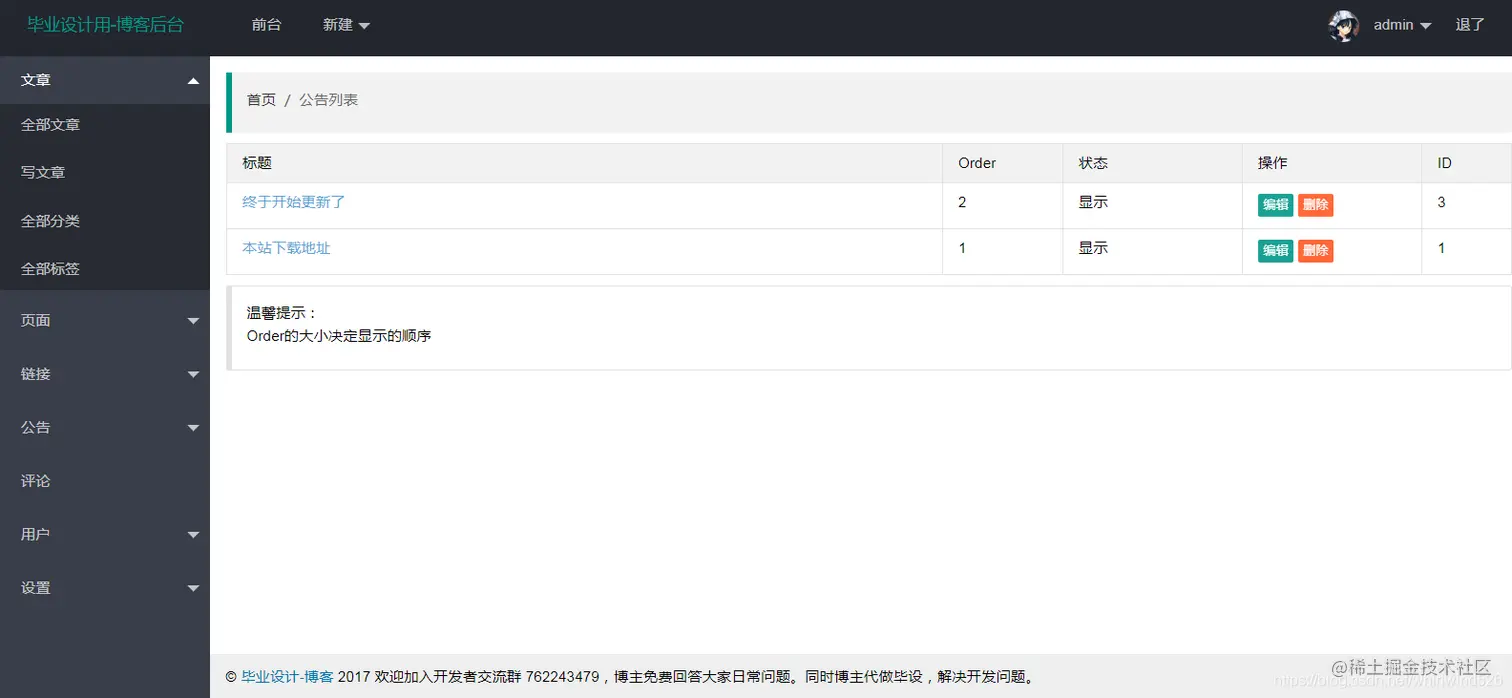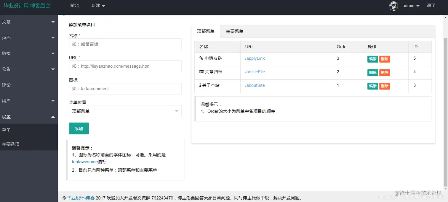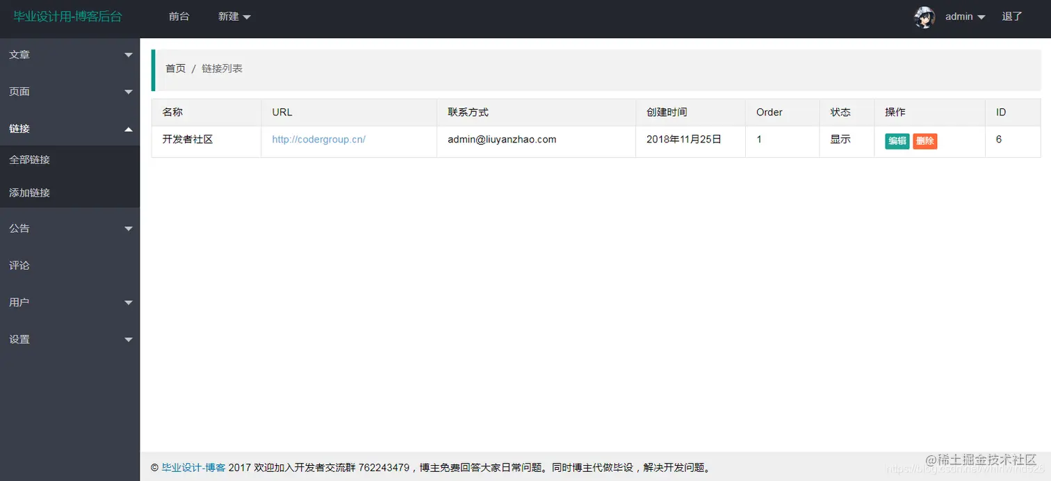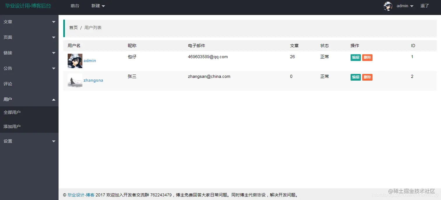 后台管理界面: