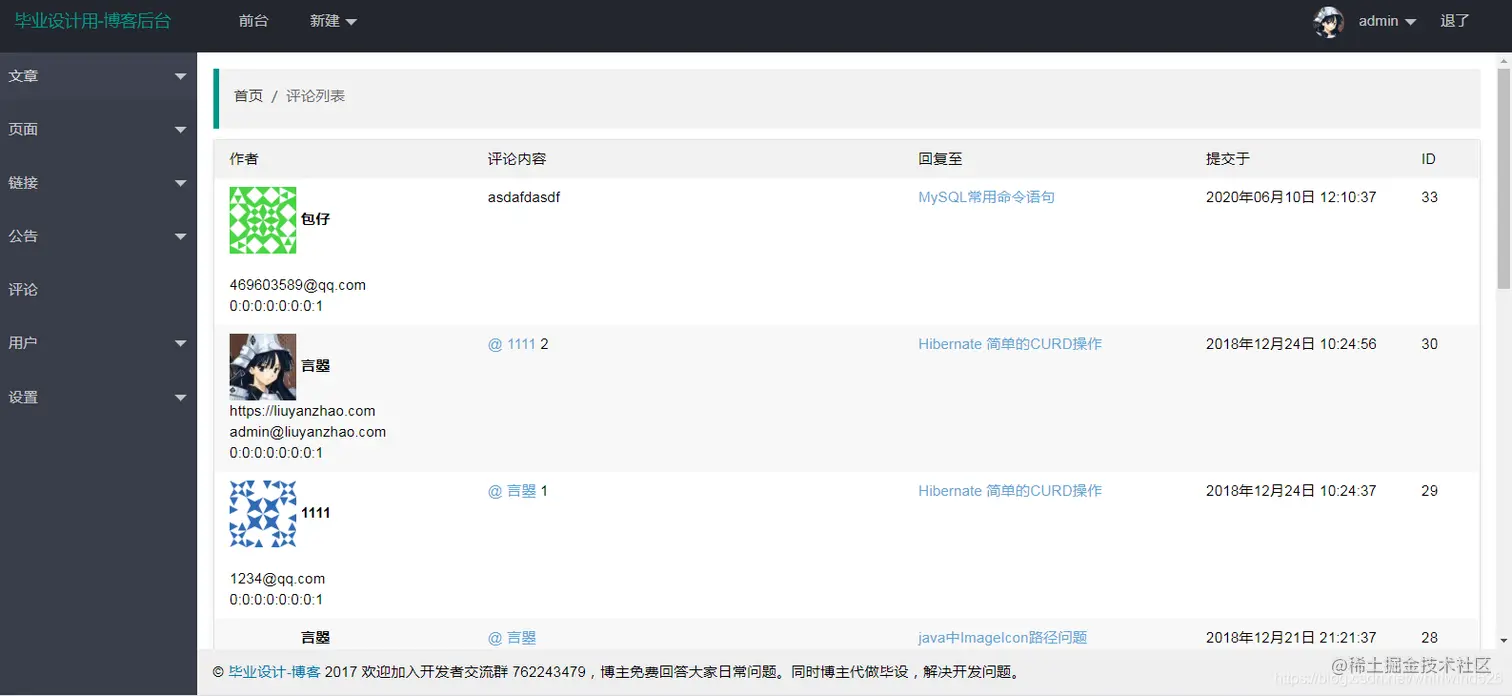 用户在博客系统前端可以实现博客查看,留言,评论,打赏等功能。