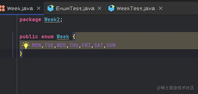 首先我们定义了一个枚举类,在Week2包里面。