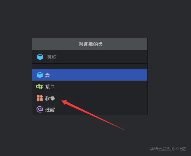 首先,从名字就可以看出,枚举是一个类,那么我们就可以直接在创建时选择枚举就可以。