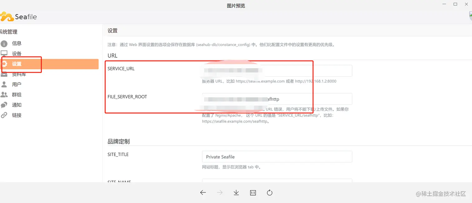 管理员界面配置,需要正确填写,这样onlyoffice才能和seafile正常通信,改为 http://<机器ip:端口> 和 http://<机器ip:端口>/seafhttp。