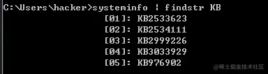 利用系统溢出漏洞进行提权的关键是通过查看系统的补丁信息来找寻缺失的、可以利用来提权的补丁进行提权