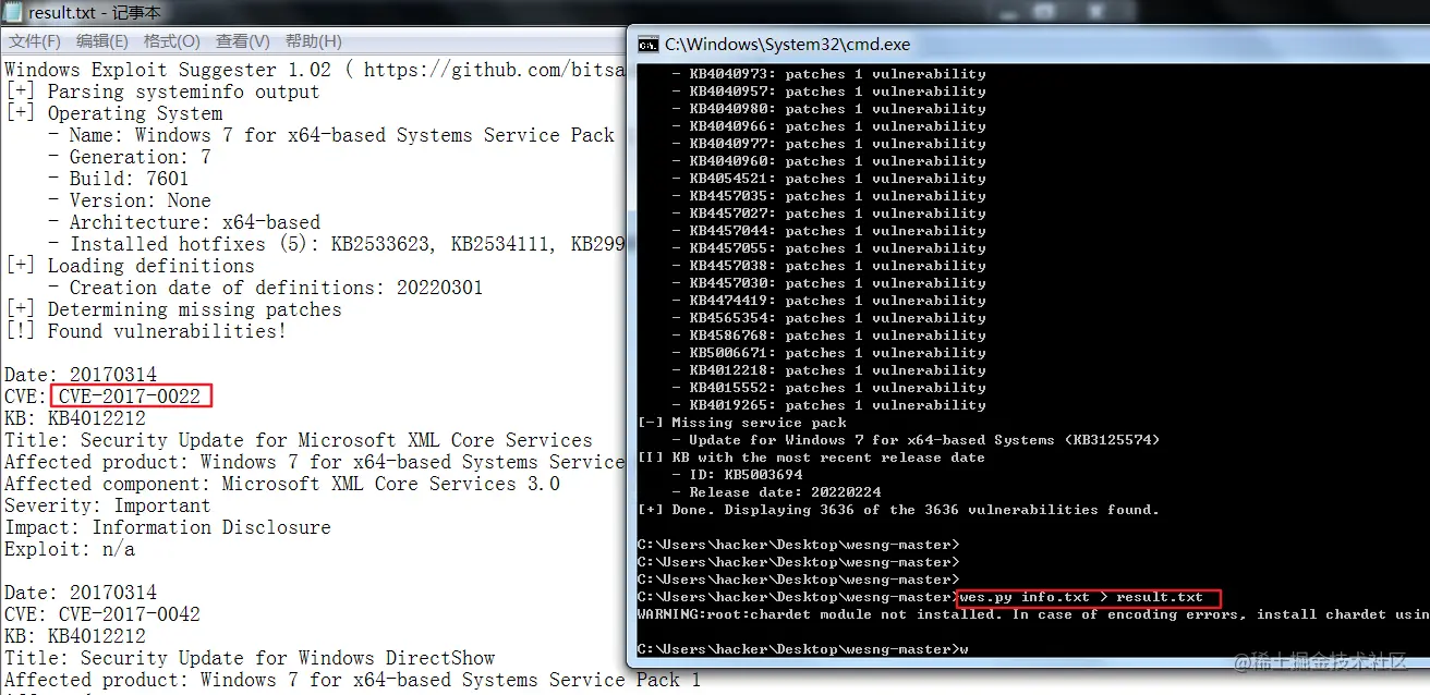 如下列出了可能存在的提权漏洞,然后我们可以去搜索这个漏洞编号对应的exp进行利用