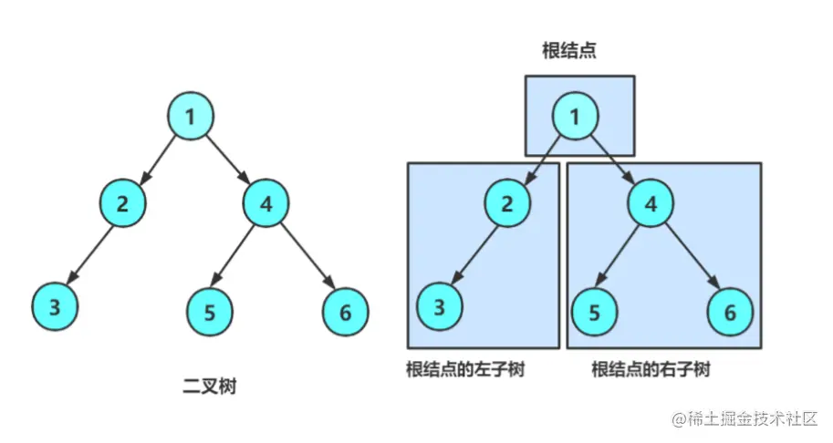 ① 由一个根节点加上两颗被称为左子树和右子树的二叉树组成