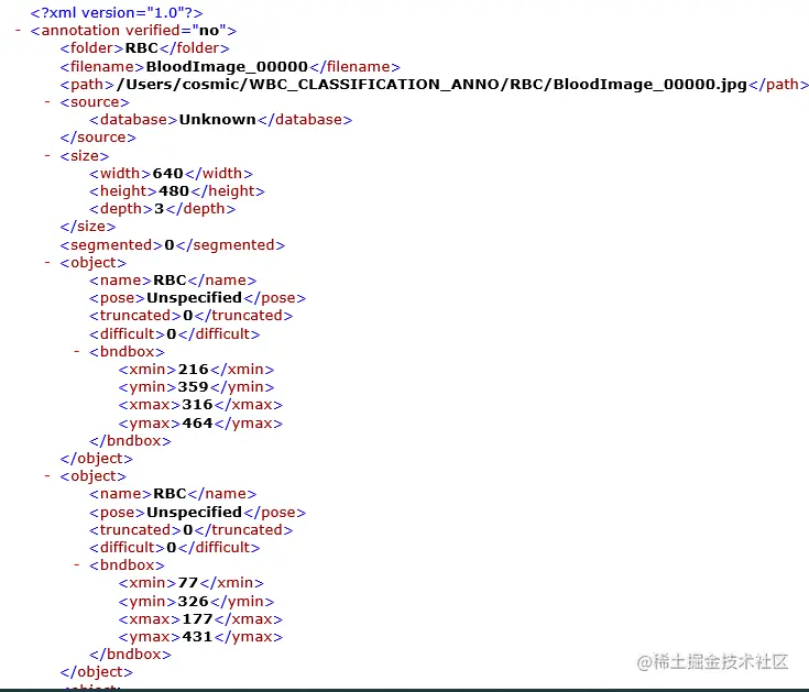 此项目使用了AI Studio平台上RBC数据集,一共有366条数据,数据是xml格式的图片标注文件。
