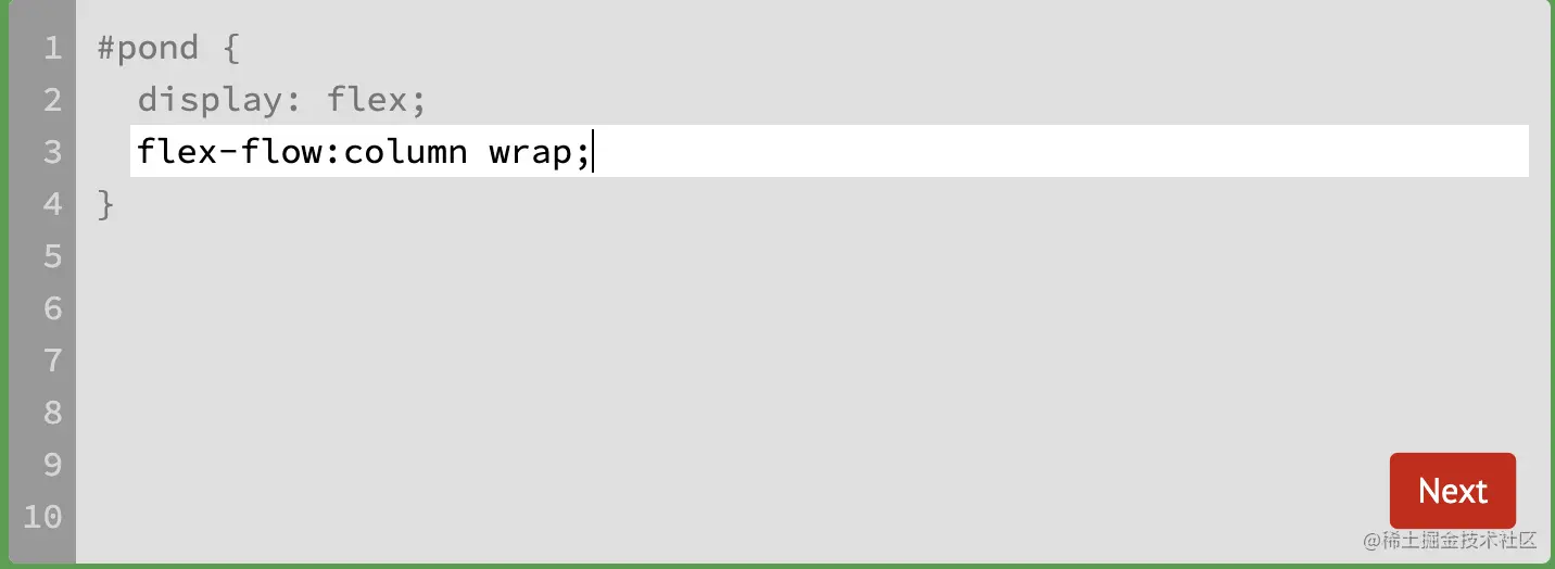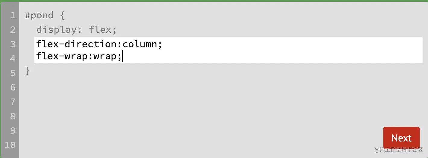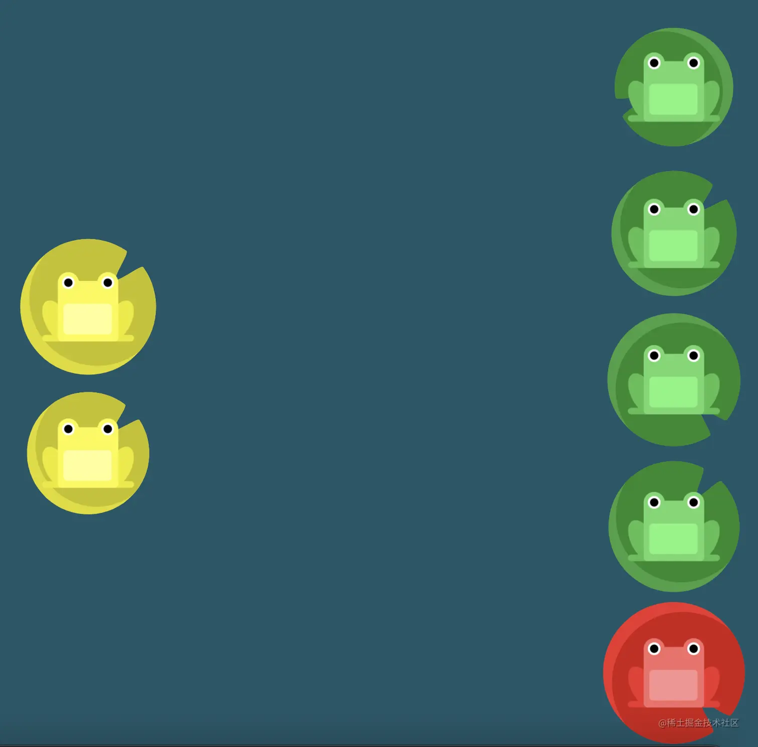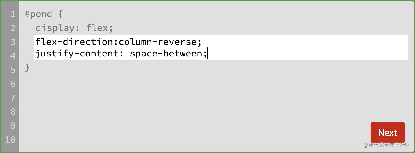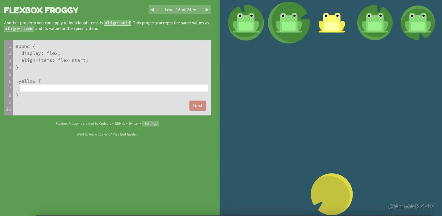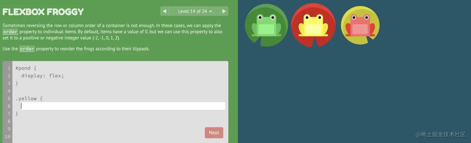 游戏玩法:通过修改flexbox的属性值,使青蛙移动到与其同色的荷叶上。