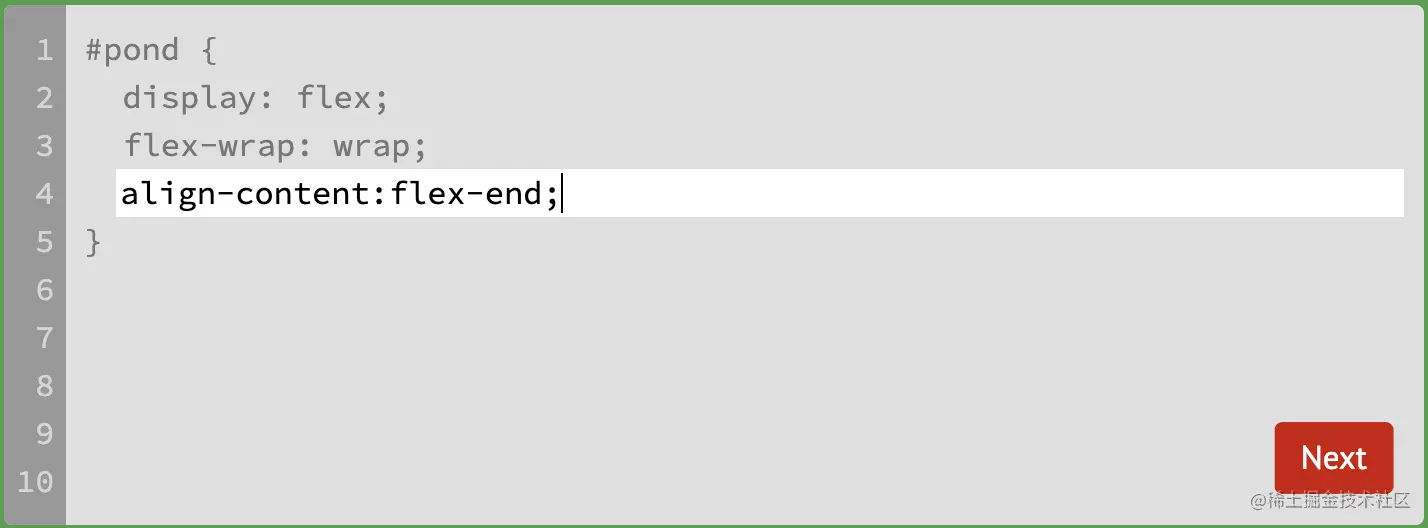 在本题里,按行排列,换行后,调整行间距,或者说是整个容器的排布方式。按照在垂直方向从上到下分布。