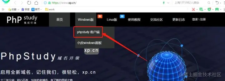 为方便用户使用,网页运行环境都已经被整合为套件形式下载,用户只要下载这些软件的套件即可。在这里,我们使用PhPstudy这个套件。首先登录官网,下载对应版本的软件,由于我们使用的是Windows,因此下载Windows版。