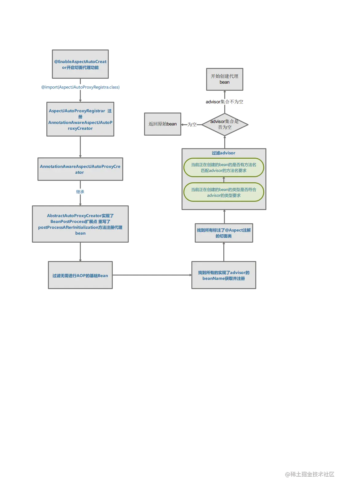 拿到所有的advice的流程已经走完,接下来就是创建代理类了,画张图,整理下流程