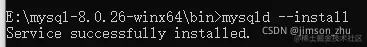 3)安装启动mysqld(SQL后台程序,即MySQL服务器。要想使用客户端程序,该程序必须运行,因为客户端通过连接服务器来访问数据库),mysqld --install