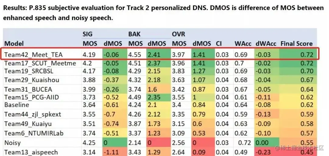 图3·实时个性化语音增强比赛成绩
