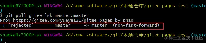 - push到远程仓库后,本地reset回滚后commit后再push,会报冲突(报错:non-fast-toward)。 本地回滚了,但远程仓库没有回滚,此时push就会报错:non-fast-toward。这种情况该怎么办?