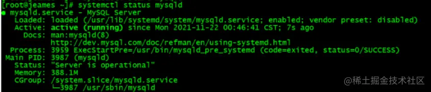 [root@jeames ~]# chown mysql:mysql /var/lib/mysql -R