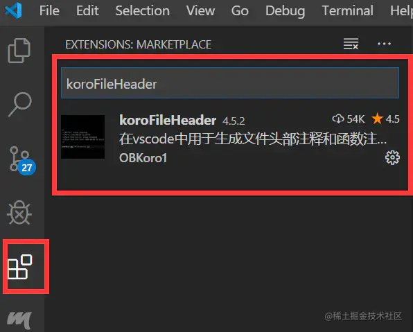 在插件中查询插件koroFileHeader,安装