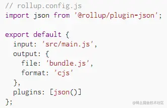 - 编辑您的rollup.config.js文件以包含 JSON 插件: