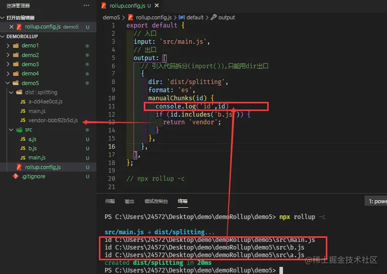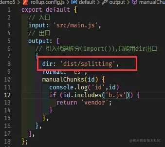 - output.manualChunks 自定义代码拆分模块