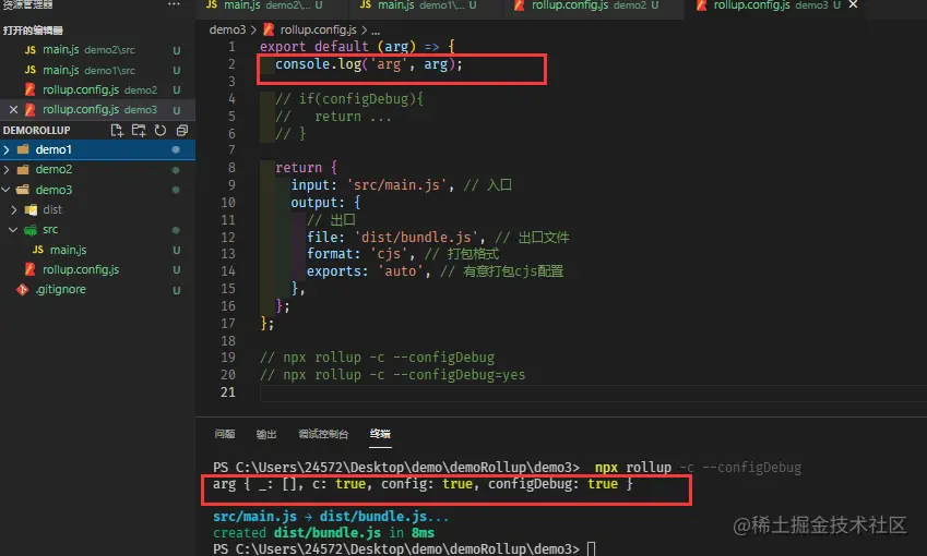 即可在rollup.config.js中获得参数, 通过此参数即可做相应的返回, (也可用环境变量)