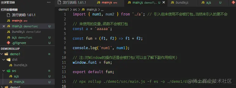 npx rollup ./src/main.js -f cjs -o dist/bundle.js (打包CommonJS的库 )
