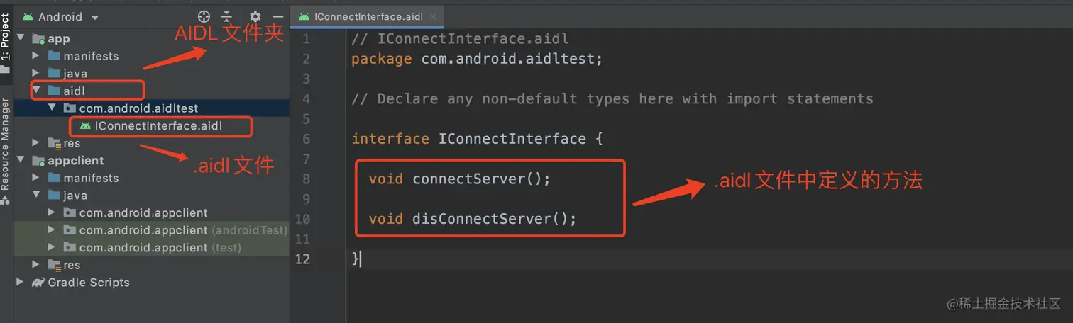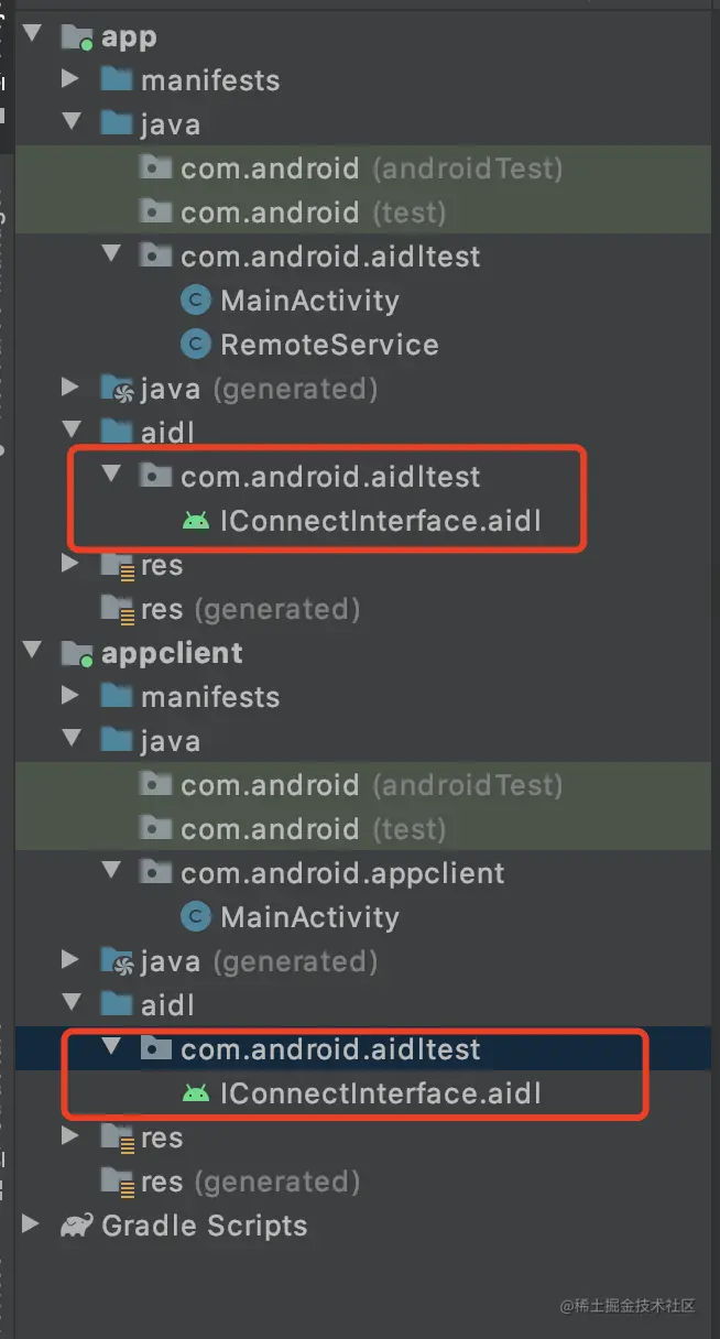 1、拷贝服务端创建的.aidl文件到客户端(路径必须和服务端一致)
