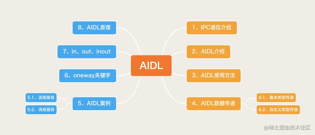 java中的8种基本数据类型。String、CharSequence。List:List中的所有元素必须是上述列表中支持的数据类型。Map:Map中的所有元素必须是上述列表中支持的数据类型。Parcelable:所有实现了Parcelable接口的对象。AIDL:AIDL接口本身也可以在AIDL文件中使用。