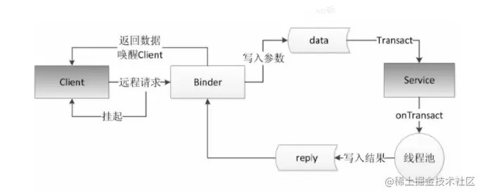 onTransact中根据code值确定客户端请求的目标方法以及获取目标方法对应的参数。 - 调用本地对应的方法。